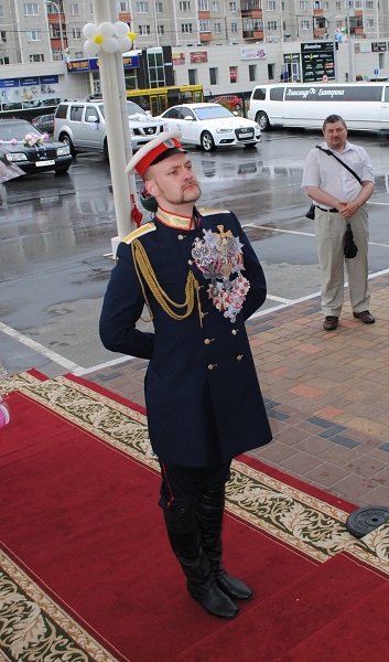 По старинной русской традиции на свадьбу было принято приглашать генерала. Герои рассказа А.П. Чехова восклицали: « Ну, какая же свадьба без генерала!» Он поздравил новоиспеченные пары, и вручил свиток с наказом молодоженам.