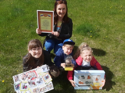 По итогам акции ” Один день с ребенком” победителям вручили дипломы и памятные подарки. 1 место- семья Конышевых.