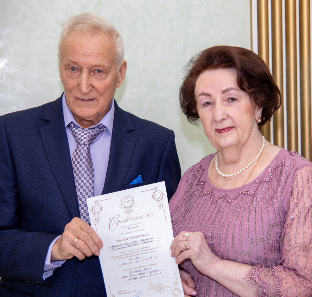 Юбиляры вырастили сына и дочь. Помогают в воспитании пятерых внуков. Ценят друг в друге честность, порядочность, юмор.